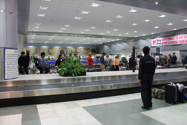 這一出境映入眼簾的文明景象,讓我先對德里(Delhi)有了好印象,果然門面是很重要的,出關的計程車是國營,去到Paharganj(新德里火車站、Main Bazzar那一區)是公定價Rs.250(一印度盧比約為台幣0.7元),果然一出機場就會有許多人搶著幫你推車,我是為避免麻煩,非必要我是不會卸下我的背包的,倒是同行出關的夥伴Linda一不留神,推車就被推走了,他以為是計程車司機來幫忙,結果當然對方就是希望你能給他小費,不過只要你不願意給(前提是對方真的也沒幫你什麼)我覺得他們也不會硬凹。